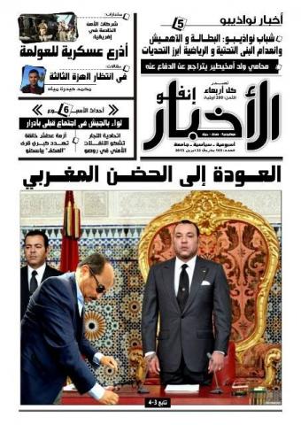 صحيفة "الأخبار" تظهر صورة للرئيس ولد عبد العزيز وهو ينحني أمام الملك المغربي محمد السادس.