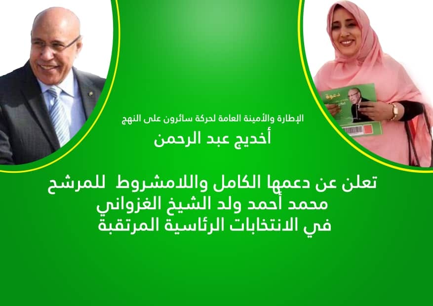 اِقرأ المزيد: حركة سائرون علي النهج تعلن دعمها للمرشح محمد ولد الشيخ محمداحمد ولد الغزواني