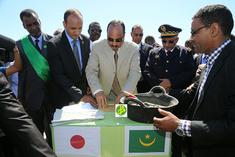 وضع رئيس الجمهورية السيد محمد ولد عبد العزيز صباح اليوم الاثنين في نواذيبو الحجر الأساس لتوسعة ميناء الصيد التقليدي في نواذيبو.