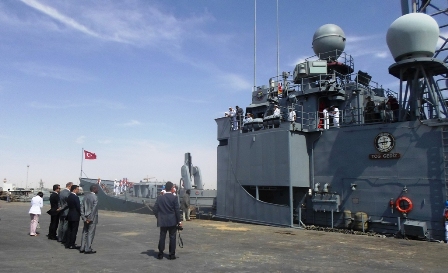 و كانت البارجة التي تُقل على متنها حوالي ألف شخص من العسكريين والقوافل الطبية، وصلت نواكشوط صباح الثلاثاء الماضى وكان في استقبالها لدى وصولها ميناء نواكشوط السفير التركي بموريتانيا، موسي كولا كلي كايا، وعدد من المسئولين العسكريين والمدنيين الموريتانيين.