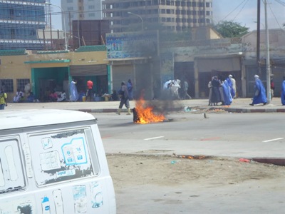 كما تم تكسير صور الرئيس ولد عبد العزيز المعروضة في الشوارع الرئيسية بالعاصمة، بينما شوهدت باصات وهي تحمل المتظاهرين إلى قلب العاصمة، ودخلت في المواجهة مجموعات شبابية، أضرمت النيران في عجلات النيران، بينما شوهدت وحدات الشرطة وهي تطلق مسيلات الدموع بعفوية، فيما تحدثت بعض المصادر عن نفاد مسيلات الدموع لدى بعض فرق الشرطة، وطوقت وحدات الحرس الوطني مقر المستشفى الوطني، ومنعت الوصول إليه، حيث تحمل البنادق إلى جانب مسيلات الدموع،