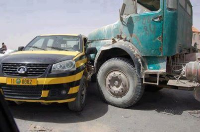 أسفر اصطدام قوي، بين شاحنة من الحجم الكبير وسيارة شرطة المرور ، في العاصمة انوكشوط في الصباح الباكر ، عن إصابة عنصر إصابة خفيفة .