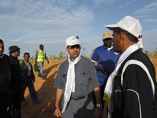 نواكشوط ، 06/09/2013 - أدى رئيس الجمهورية السيد محمد ولد عبد العزيز صباح اليوم الجمعة زيارة تفقد واطلاع للمقطعين الخامس والسابع على طريق اكجوجت من البرنامج الخاص لحماية مدينة نواكشوط من زحف الرمال والمد البحري.