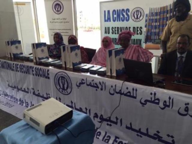 نشير إلى أن مؤسسة الصندوق الوطني للضمان الاجتماعي شاركت في كافة فعاليات هذا اليوم من خلال فريق متكامل من أطر وعمال يتقدمهم المدير العام السيد عثمان محمد المامون والمدير العام المساعد سيدى عبد الله الطالب مصطف بالإضافة إلى باقي أعضاء الفريق الذين ساهموا في التعريف بالصندوق الوطني للضمان الاجتماعي وبالخدمات التي يقدمها من خلال توزيع منشورات ومطويات فنية وكذلك عروض مرئية اسكتشات ومحاضرات تم عرضها من خلال شاشة كبيرة تم نصبها عند مدخل المعرض.