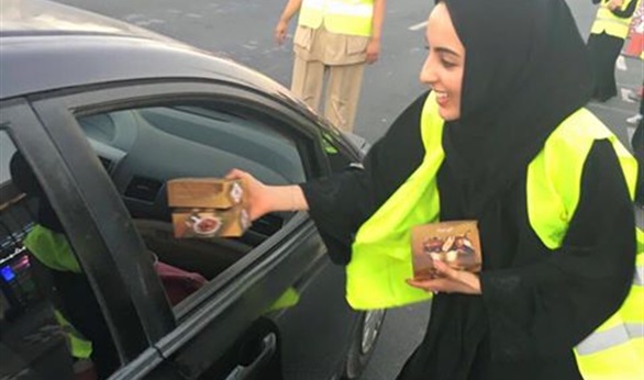 وزيرة توزع وجبات افطارعلى السائقين (صورة)