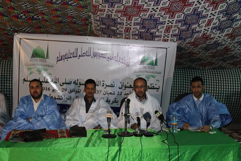 نصرة الله ورسوله عنوان ندوة من تنظيم المنتدى العالمي لنصرة رسول الله صلى الله عليه وسلم الذي يرأسه الشريف الشيخ علي الرضى بن محمد ناجي الصعيدي في قرية التيسير شمالي العاصمة نواكشوط 22 شعبان 1437 الموافق 29 مايو 2016