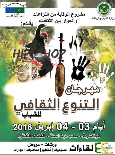 بدأت صباح اليوم الاحد بمباني الفضاءالثفافى في نوكشوط أنشطة " مشروع الوقاية من النزاعات والحوار بين الثقافات" والتى تدوم يومين ،بالتعاون بين وزارة الثقافة والشباب والرياضة والاتحاد الاوروبي الممول للمشروع.