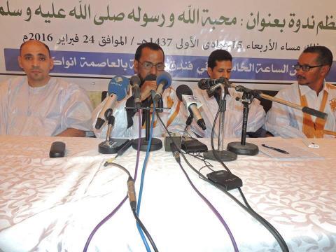 نظم المنتدى العالمي لنصرة رسول الله صلى الله عليه وسلم الذي يرأسه الشريف الشيخ علي الرضى بن محمد ناجي الصعيدي ندوة لنطرة الرسول صلى الله عليه وسلم في قرية التيسير شمالي انواكشوط مساء الإثنين 26 جمادى الأخيرة 1437 هجرية، الموافق 04 ابريل 2016 كانت البداية بختمة للقرآن العظيم وزعت على ستين قارئا، ثم بتلاوة عطرة من خواتيم سورة مريم مع القارئ الشريف علي الرضى بن باباه بن بدي، بعد ذلك تناول الكلام الشريف العلامة أحمدو ولد عابدين نائب الأمين العام للمنتدى العالمي لنصرة رسول الله صلى الله عليه وسلم، فرحب بالحضور نثرا وشعرا، ثم قرأ كلمة الشيخ علي الرضى بن محمد ناجي نيابة عنه ، وقد تناولت هذه الكلمة الفصل الأول من كتاب تحقيق العبودية لله رب العالمين، لمؤلفه الشيخ علي الرضى. ليكون المتدخل الثاني السيد الإمام الشريف حمود ولد سيدين الصعيدي وقد كانت محاضرته عن السيرة النبوية، ذاكرا أهم أحداثها بالتفصيل، حيث أجاد وأفاد في عرضه، ليجيء دور العالم الإمام الشاعر ابـتَّ ولد باباه حيث ألقى قصيدة رائعة في مديحه صلى الله عليه وسلم، جاء بعد ذلك دور قصيدة للشاعر واللغوي الكبير أحمد دولة ولد المهدي، وقد ألقاها نيابة عنه صاحب الربط بين فقرات الندوة العالم الشاعر محمد سالم ولد النيه أمين المديح في المنتدى العالمي لنصرة الرسول صلى الله عليه وسلم، ليأخذ الكلام من بعده الشريف سيدي محمد ولد مولاي ادريس، حيث ألقى كلمة في التحذير من الإلحاد، وضرورة التصدي له بما أمكن من قوة. ليتكلم بعد ذلك الإمام العالم الشريف الإمام ولد عمر ولد بوُّود. حيث بيَّـن وجوب محبته صلى الله عليه وسلم، مبرزا أن أعظم شواهد المحبة هو اتباعه صلى الله عليه وسلم، والتأسي بأفعاله وأقواله، وكان متذوقوا الشعر علي موعد مع قصيدة رائعة في المديح للشاعر الكبير المعروف أبو شجة تفاعل معها الحضور بحماس. كان بعد ذلك كلمة قيمة مع الإمام إسحاق ولد يعقوب نائب رئيس رابطة أئمة موريتانيا، أثنى فيها على دور المنتدى في لم شمل المجتمع الإسلامي، وإعطاء كل ذي حق حـقه. كانت بعده محاضرة قيمة للباحث السيد ديدي ولد المهدي، تحدثت عن الشمائل المحمدية ملفتا النظر إلى أهمية دراسة سيرته صلى الله عليه وسلم، بعد ذلك جاء دور الشاعر الكبير أبو بكرٍ ولد المامي، حيث ألقى قصيدة عصماء في المديح النبوي نالت إعجاب الجماهير. ثم جاء دور الشاعر أبو بكرٍ ولد بلال مؤذن مسجد بنين في توجنين، وقد ألقى قصيدة رائعة في مديحه صلى الله عليه وسلم، ثم استدعي العالم الشاعر محمد محمود ولد المزروف ليلقي قصيدة في المديح النبوي نيابة عن عمه العلامة السيري سيلوم ولد المزروف. وكان ختام الشعراء مع الشاعر الكبير محمد الأمين ولد أحمد ديَّ مشنفا أسماع الحضور بقصائد من الشعر الحساني في المديح النبوي، وكان ختم الندوة كما بدأ بخواتيم سورة مريم مع الشريف القارئ علي الرضى بن باباه بن بدي، يذكر أن فعاليات الندوة استمرت لنحو ساعتين ونصف، وتوجت فاخر أقيم على شرف الحضور، تكريما من الشريف دحمان السملالي جزاه الله خيرا، وقد حضرها جمع غفير من العلماء والأيمة والوجهاء والشباب، وواكبها لفيف من الإعلاميين، ونقلت على أثير إذاعة انواكشوط الحرة.