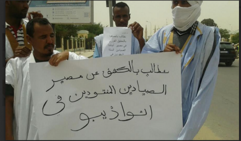 نظم أهالي وذوو البحارة المفقودين بنواذيبو الخميس وقفة احتجاجية أمام مباني وزارة الداخلية واللامركزية بالعاصمة نواكشوط ، وطالب المحتجون السلطات الموريتانية بـ "التحقيق الفوري في مصير الصيادين الستة المفقودين في نواذيبو" ورفعوا شعارات تدعو إلى الكشف عن مصيرهم.