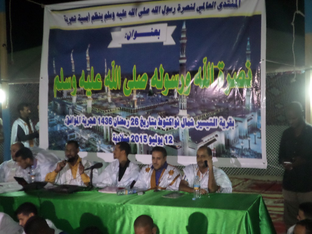 نظم المنتدى العالمي لنصرة رسول الله صلى الله عليه وسلم الذي يرأسه الشريف الإمام الشيخ علي الرضى بن محمد ناج الصعيدي، ندوة بعنوان: "نصرة الله ورسوله صلى الله عليه وسلم". وقد نُظمت هذه الندوة في قرية التيسير بالضاحية الشمالية للعاصمة انواكشوط، وذلك ليلة الاثنين السادس والعشرين من شهر رمضان المبارك من سنة 1436 للهجرة الكريمة، الموافق: 13/07/2015 م.
