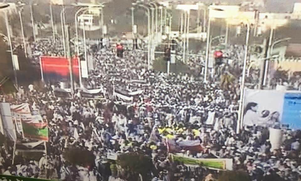 وتظهر الصور المرفق جوانب من المسيرة ولحظات التحاق الرئيس بها ولقطات من تفاعل الجمهور معه علي المنصة
