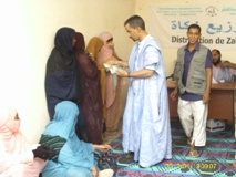 افطار الصائم والى توزيع المياه فى اطار سقاية الفقير بشكل شبه يومى منذو انشاء الجمعية فى هذه المدينة التى تعيش ازمة عطش حادة .وقد استفادت (345 )أسرة فقيرة خلال هذا الشهر الكريم من عمل الجمعية وتقوم الجمعية بكفالة (5 )اسر فقيرة طيلة شهر رمضان بمواد غذائية ومبالغ نقدية كما توفر شاتان حلوب لآسر ايتام .كما تقوم هذه الجمعية بتوفير الادوية للمرضى الفقراء وخاصة اصحاب الامراض المزمنة وتساهم بمساعدة نقدية فى حالات الرفع الطبى للفقراء .ويأتى هذا النجاح الذى حققته الجمعية فى كسب ثقة المحسنين والمتصدقين والخيرين فى الانجازات التى تحققت منذو انشائها ضمن اهداف الجمعية حيث قامت فى مجال التوزيعات بتوزيع الالبسة والمساعدات العينية والنقدية (اعانات.زكواة.كفارات)على اكثر من (10000 )اسرة وتوزيع افطار الصائم على (2708 )اسرة ولحوم الاضاحي على (3147 )اسرة مشروع صغير للدخل لصالح (17 )اسرة فقيرة(452 )معاينة طبية مع ادوية مجانية.كفالة (12 )يتيم كفالة محلية اقامة (6 )ايام لليتيم والحقيبة المدرسية لصالح (100 )يتيم وضمن الاغطية والملابس الشتوية (150 )لصالح الايتام .يذكر أن هذه الجمعية أنشئت بمبادرة من ابناء مدينة ازويرات مقرها الرئيسى ممن لهم تجارب فى العمل الجمعوي وجميع المشتركين فيها متطوعون باستثناء ثلاثة موظفين .وتم الاعتراف بها من طرف وزارة الداخلية بوصل رقم(00208 بتاريخ 07.04.2007 )وتتكون من 200 عضو ومجلس ادارة من 25 عضوا ومكتب تنفيذى من 10 اعضاء و8 لجان للعمل الميدانى وشعار ياباغي الخير أقبل...
